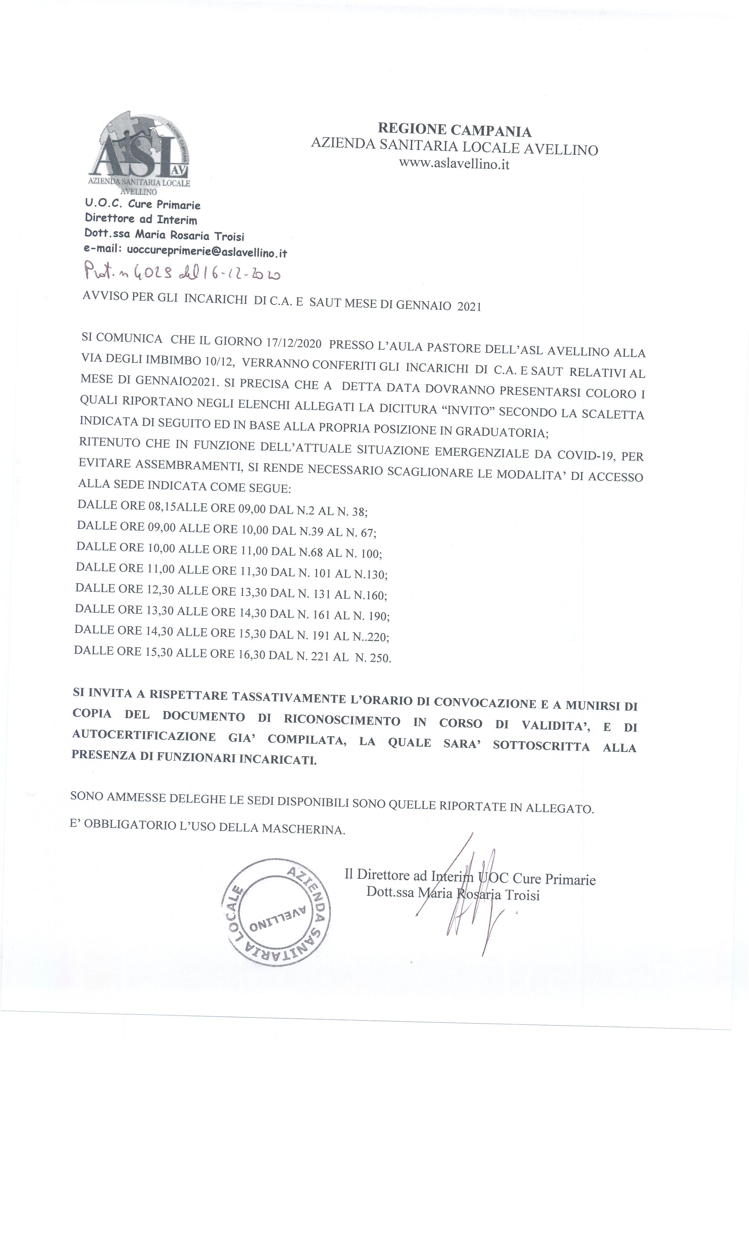 AVVISO PER GLI INCARICHI DI C.A. E SAUT GENNAIO 2021