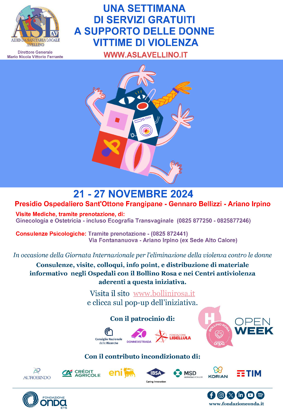 Fondazione Onda ETS e ASL di Avellino, in occasione della Giornata Internazionale per l’eliminazione della violenza contro le donne che si celebra il 25 novembre, lanciano la quarta edizione dell’(H) Open Week che si terrà dal 21 al 27 novembre [...]