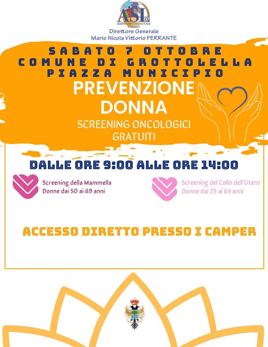 Sabato 7 ottobre le unità mobili dell’ASL faranno tappa a Grottolella in piazza Municipio. Dalle ore 9.00 alle ore 14.00 sarà possibile aderire, senza prenotazione con accesso diretto ai Camper dell'ASL, allo screening gratuito della mammella per le donne dai 50 ai 69 anni e del collo dell'utero per le donne dai 25 ai 64 anni.